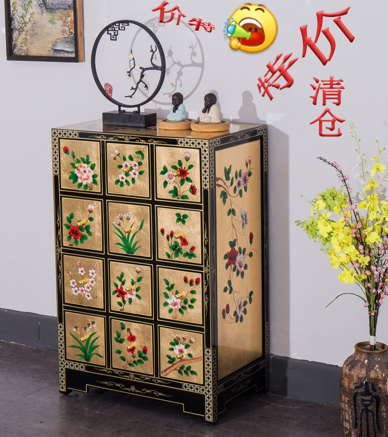 Chinese-style painted furniture clearance special price multi-drawer storage cabinet side gladiator bedroom storage Korean-style gold leaf cabinet
