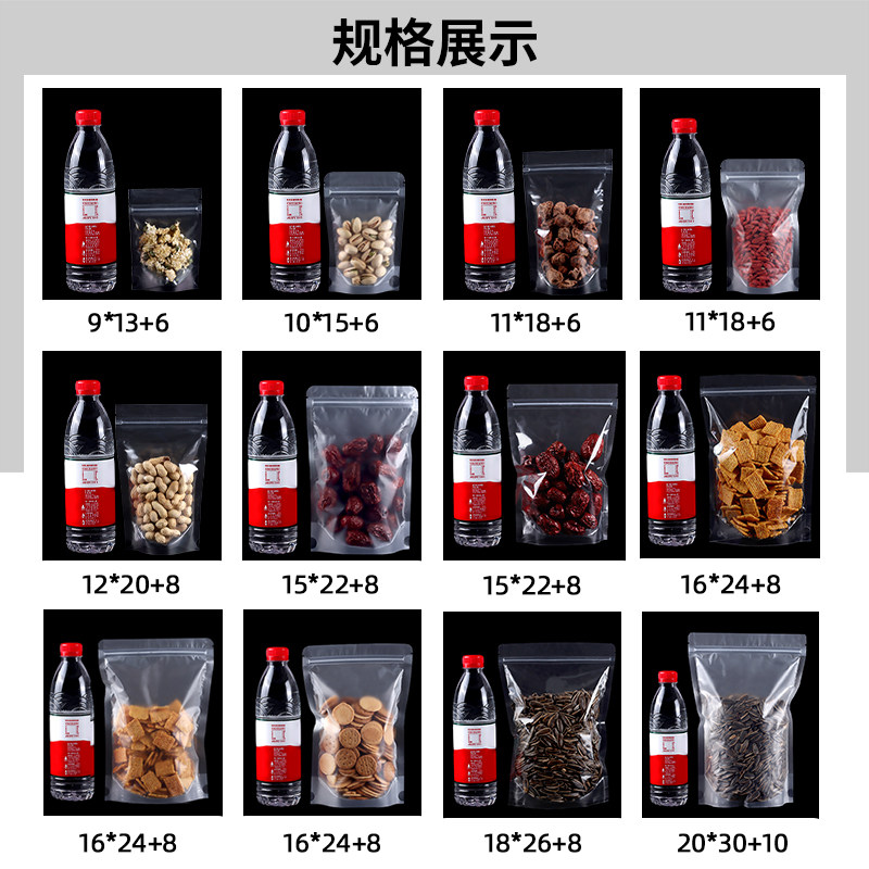 Transparent frost self-sealed bag thickening food tide sealing pocket dry fruit snack packaging bag customized