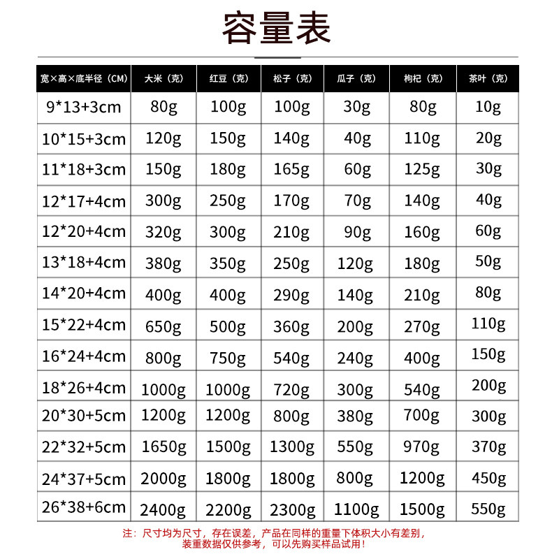 9*13 3cm 10*15 3cm 11*18 3cm 12*17 4cm 12*20 4cm 13*18 4cm 1