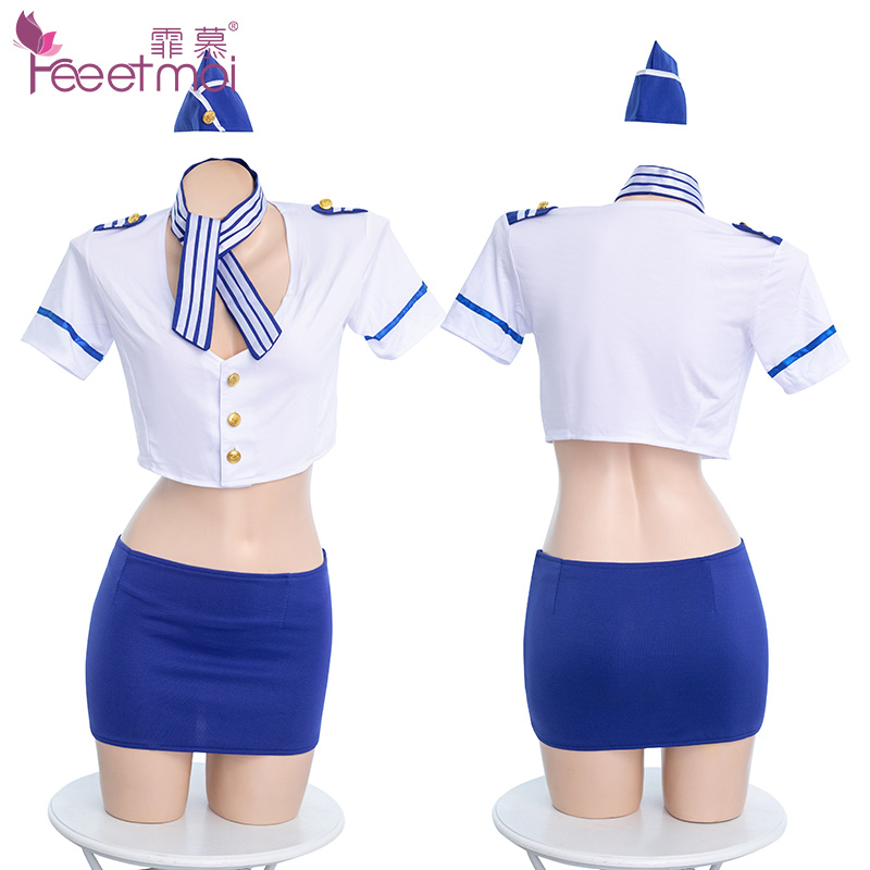 Firmus sexy air stewardess pack hips uniform subdress V - collar pajamas pure temptation clothing passion suit 7944