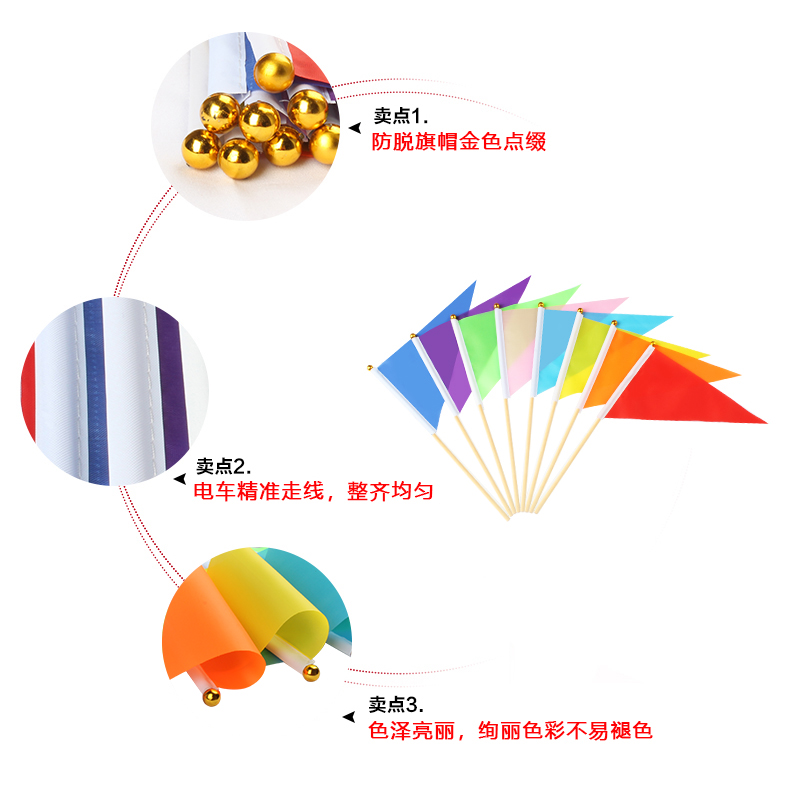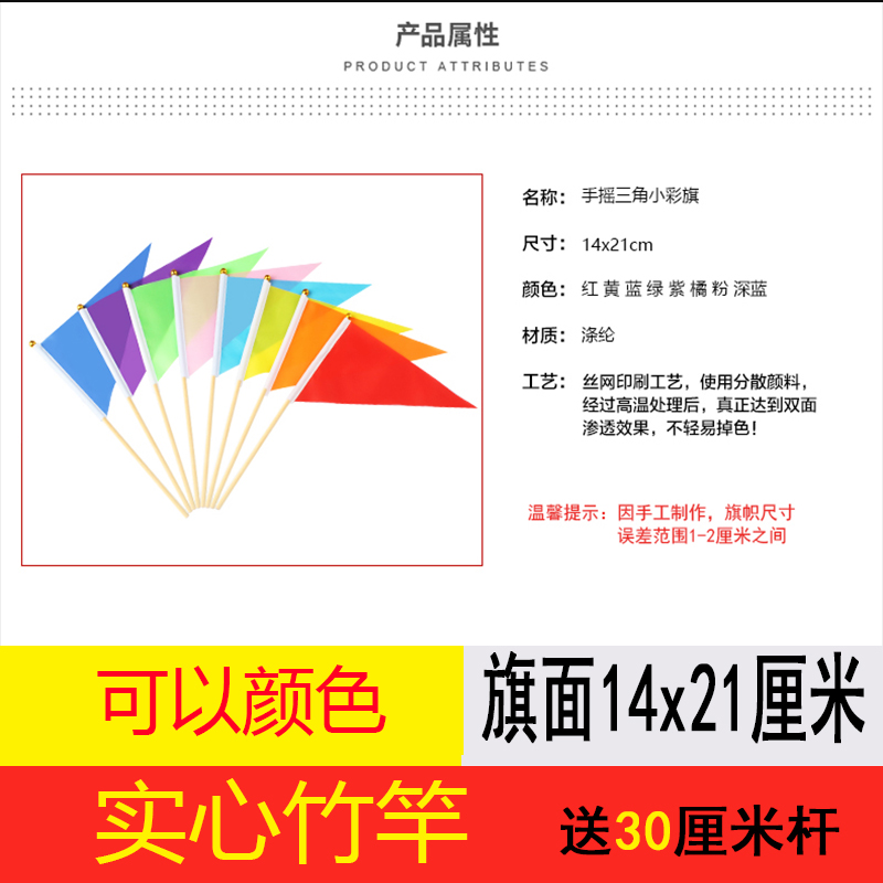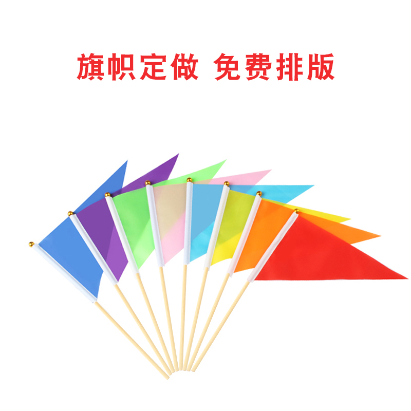 50-sided No 8 hand-held small bunting small red flag sports games Hand-held triangle color flag morning exercise hand waving custom custom advertising flag Hand waving flag Solid wood bamboo pole Triangle multicolored flag
