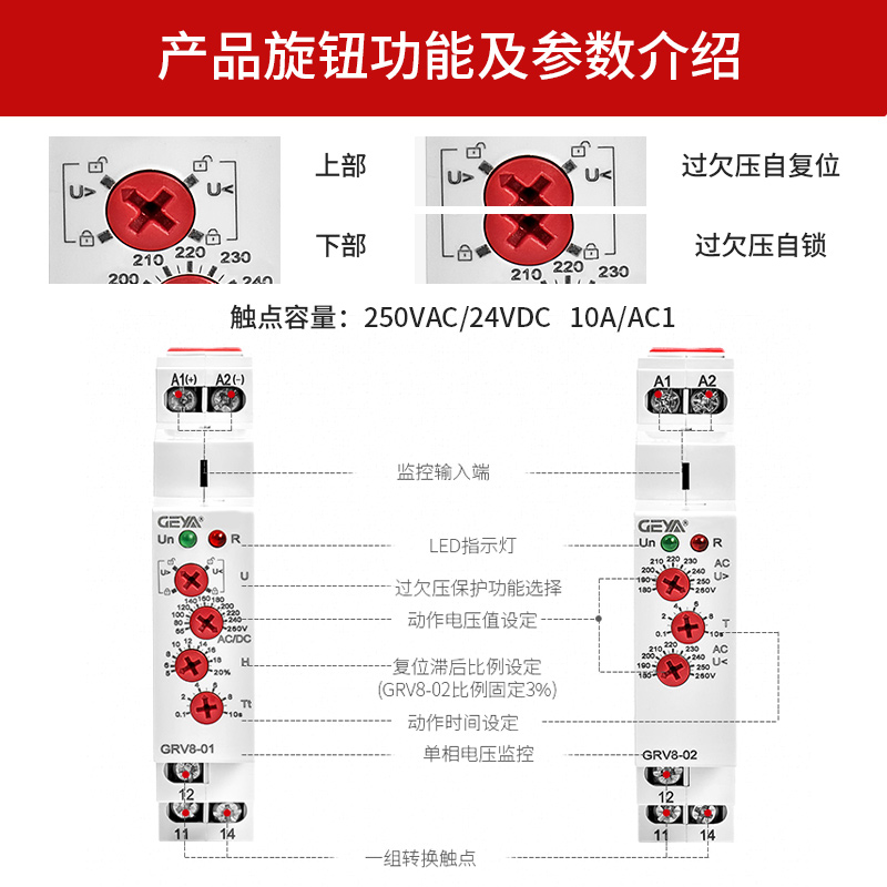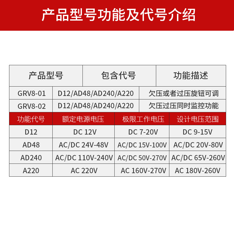 GRV8-01 GRV8-01 D12 over-voltage or undervoltage (self-or self-locking) adjustable GRV8-01 AD48 over-pressure or undervoltage (self-rewinding or self-lock) adjustable GRV8-01