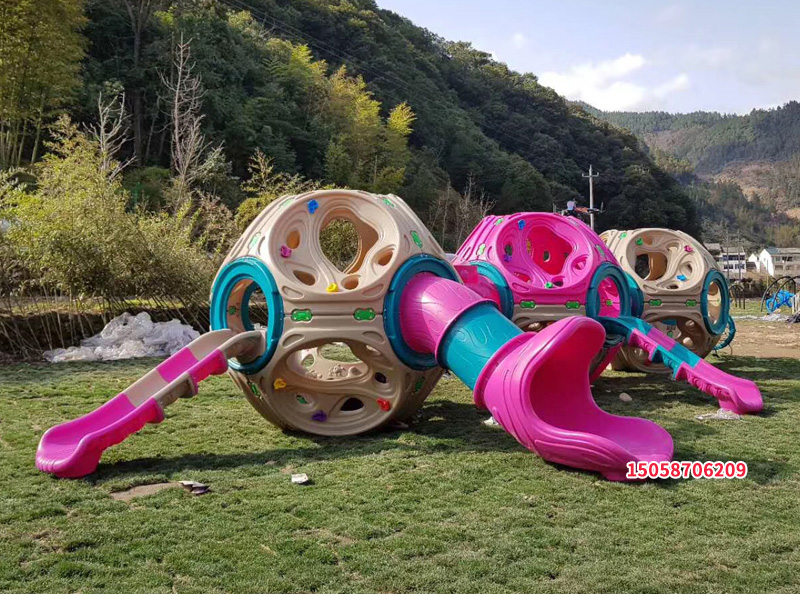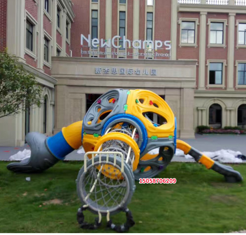 Outdoor kindergarten children early education parent-child business playground in the large plastic molecule climbing wall rock frame net slide slide