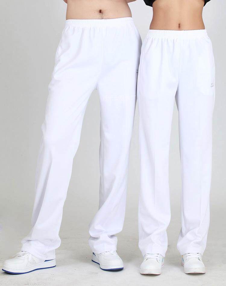 Summer thin section Sports pants Seniors Square Dance Pants Large Size for male and female students Games white pants pure white