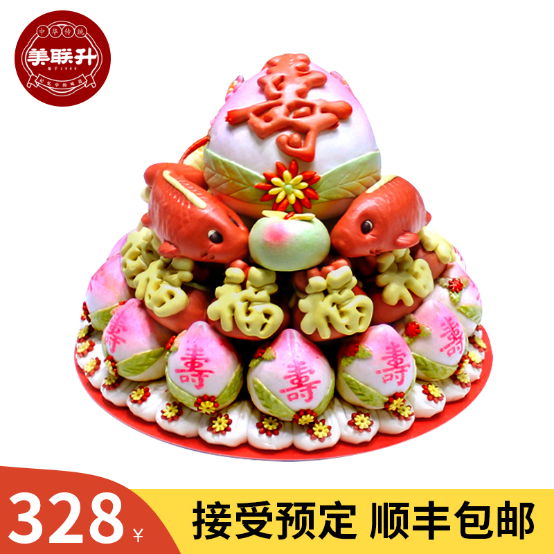 Fushou more than good fortune steamed buns combined Zhengzong Mountain East Grand Birthday Peach Old Birthday Cake Handmade Pastry Gift