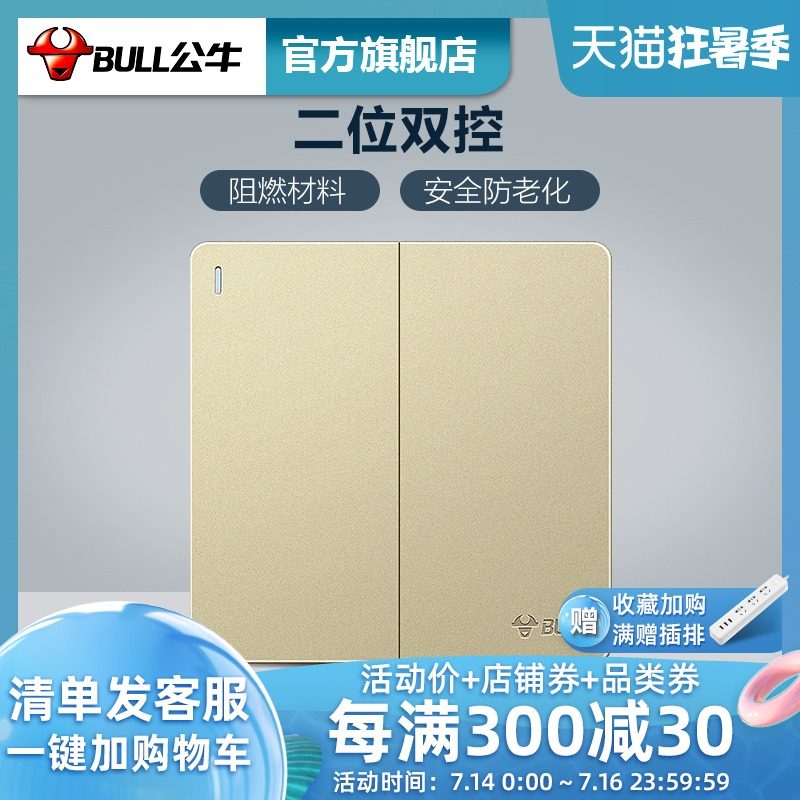 Bull socket flagship switch socket dual control switch Household 86 type dual dual control dual open dual control G12 gold