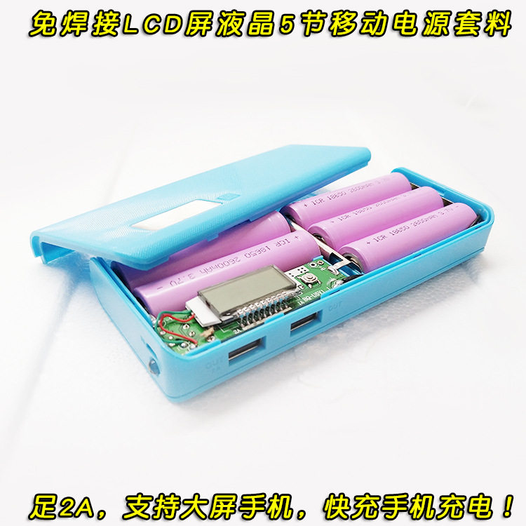 5 sections 18650 mobile charging shell welding-free mobile power supply jacketed LCD digital display screen with lamp foot 2A