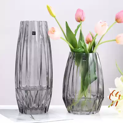 Large glass flower arrangement bottle Transparent hydroponic ins Bamboo lily Rose Vertical edge vase Living room decoration flowers