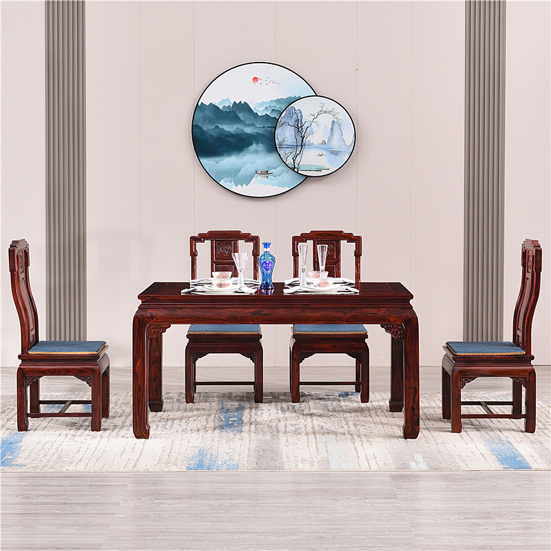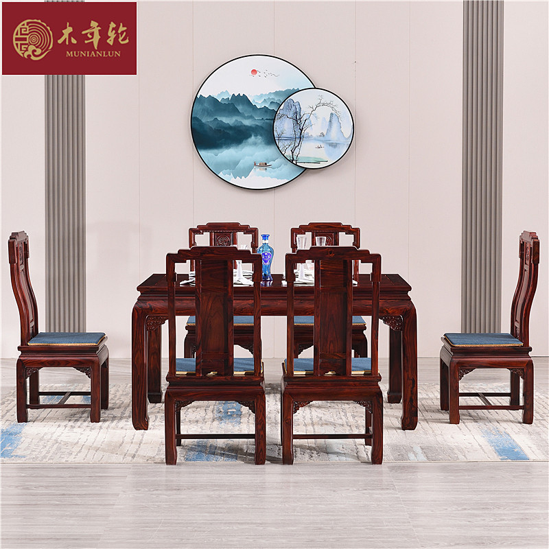 Red Wood Furniture Indonesia Black Acid Branches Table West Dining Table One Table Six Chairs Solid Wood Chinese Living Room Furniture Long Square Table