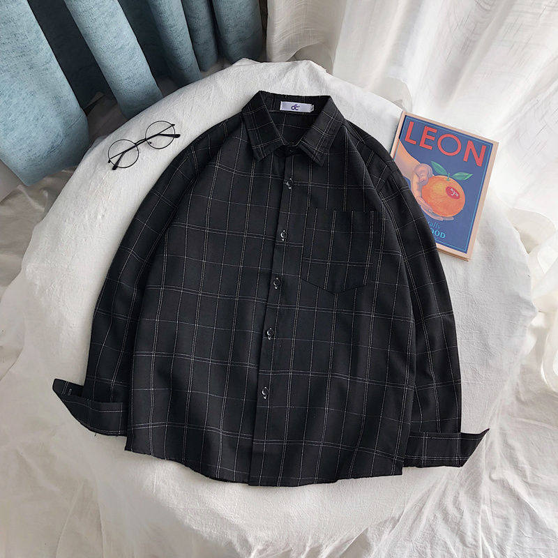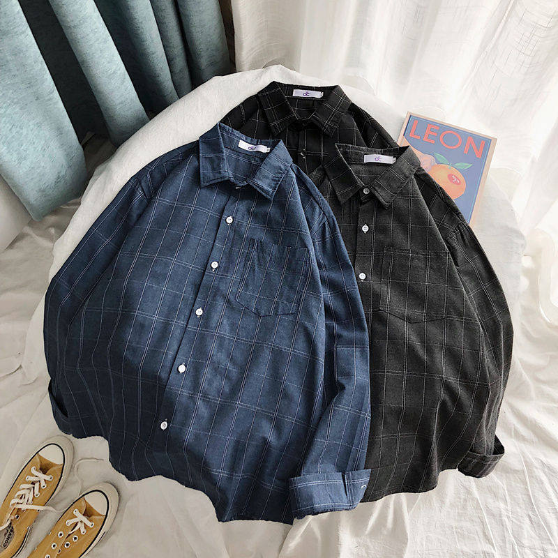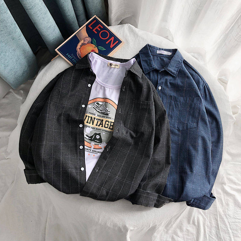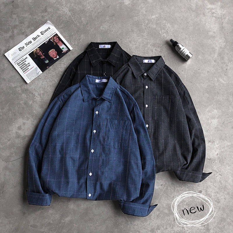 Port Wind Ins Plaid Shirt Men Loose Trend Spring Summer Casual Jacket 100 Lap Tooling Long Sleeve Shirt Suit