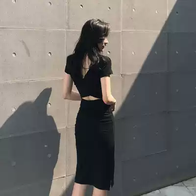 2021 summer new side split halter dress women's medium and long version slim slim temperament sexy hip skirt