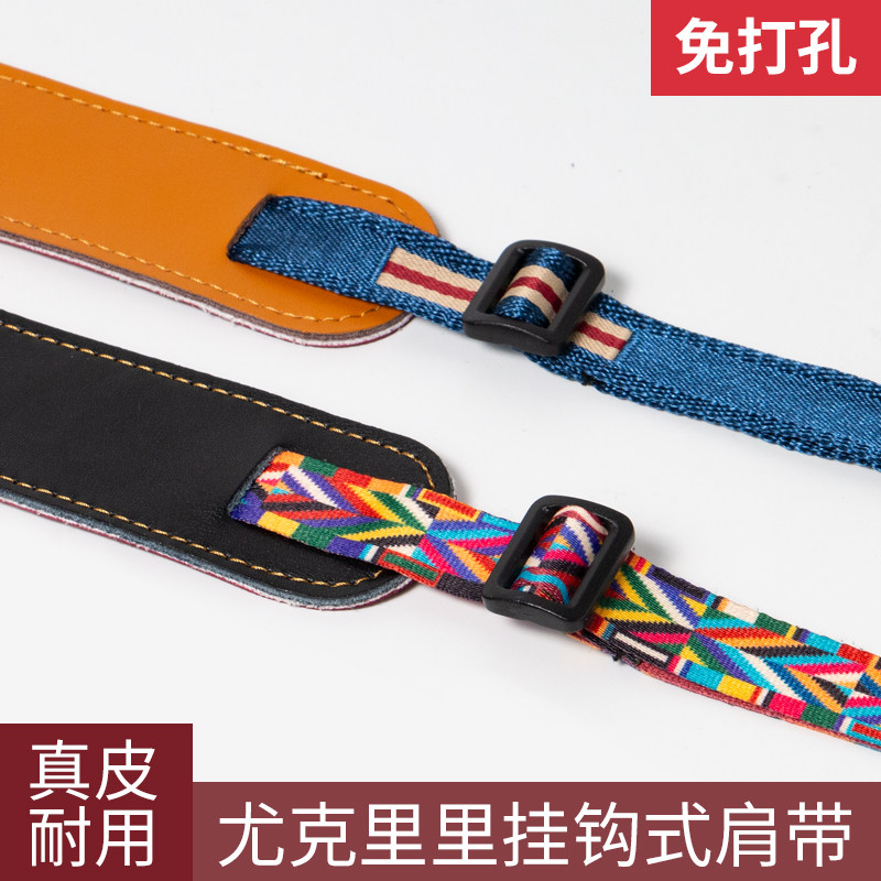 Ukulele strap free punch cross-body children adult universal small guitar leather hook strap tail stud cord