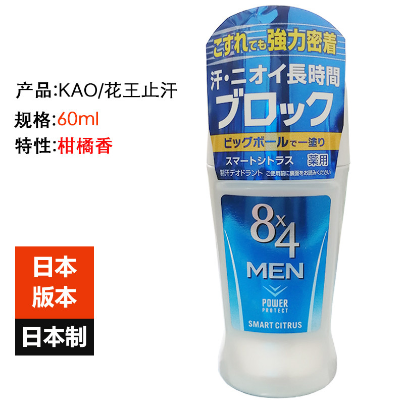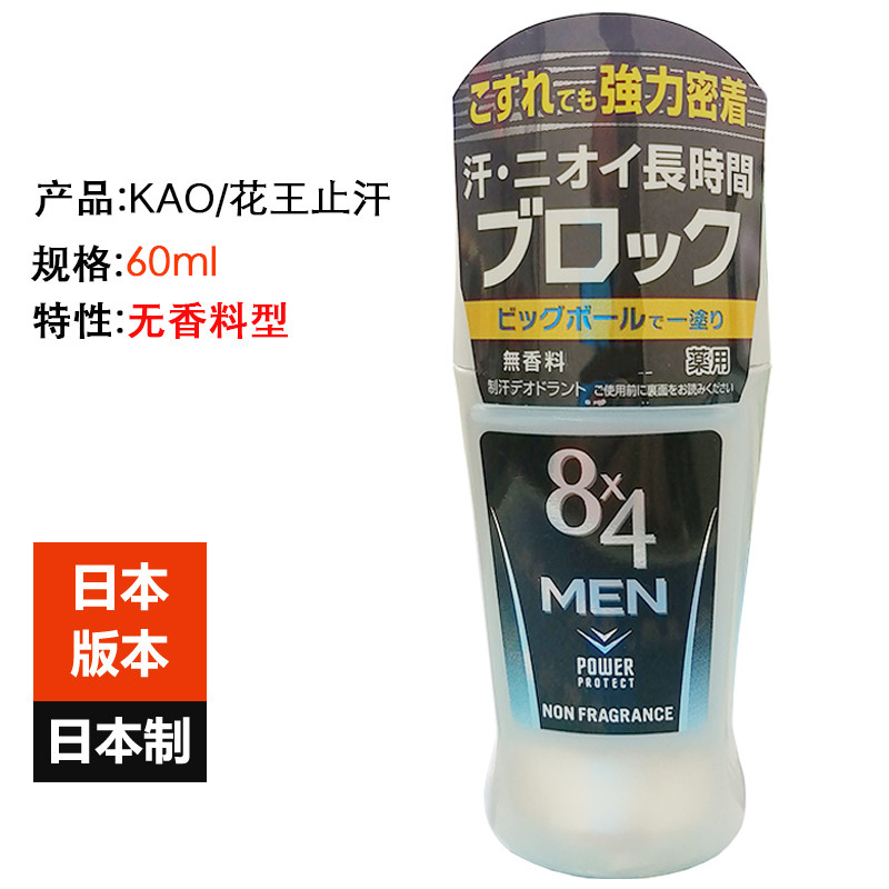 Japan's Kao 8X4 men's roll-on deodorant anti-perspirant liquid quick-drying underarm deodorant deodorant sweat deodorant roll-on ball 60ml