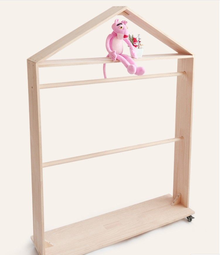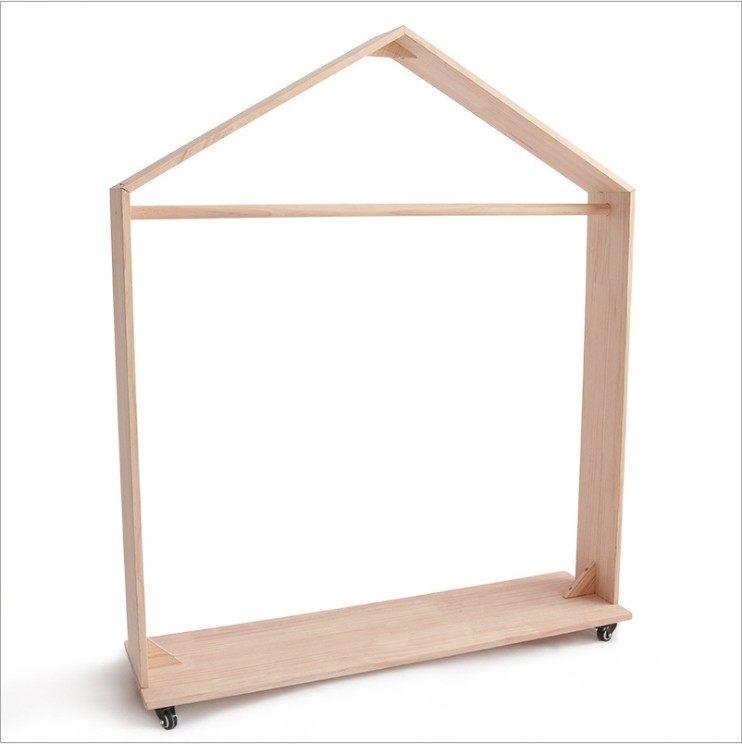 Clothing display rack solid wood mobile floor rack Nordic style log simple boys and girls clothing store decoration hanger INS
