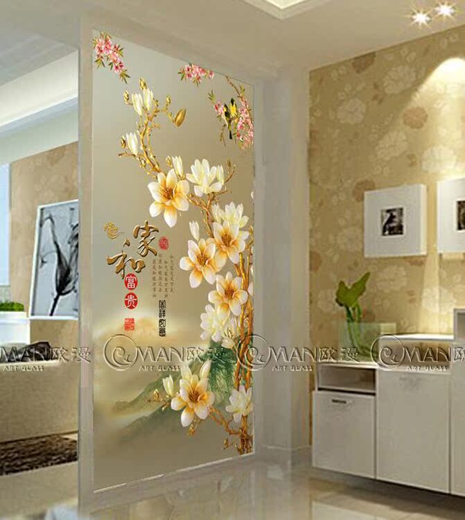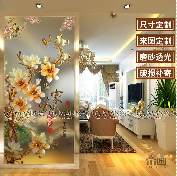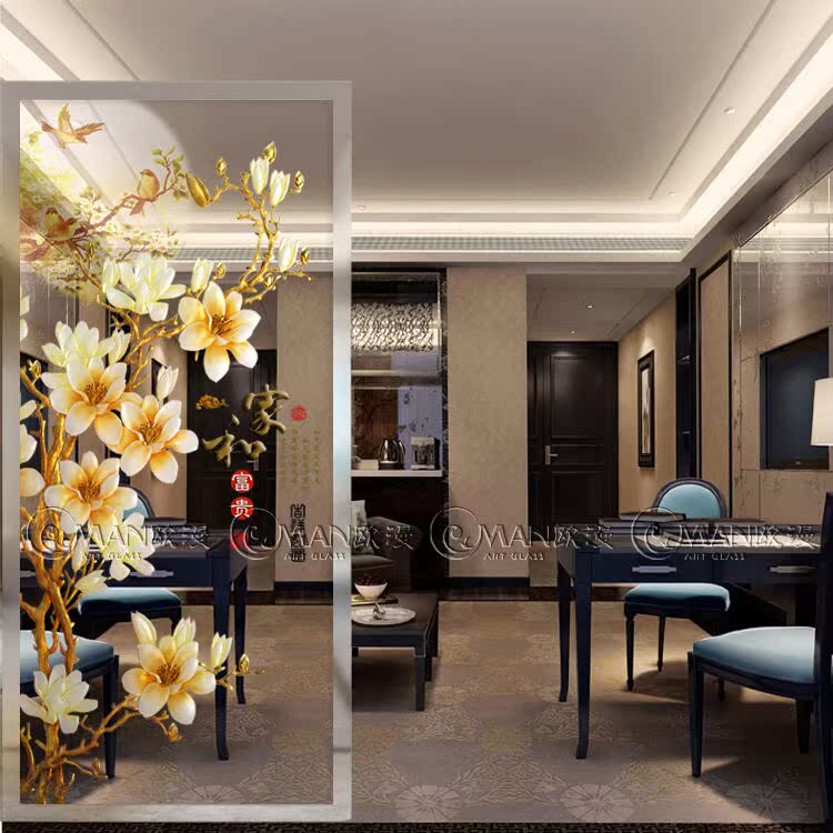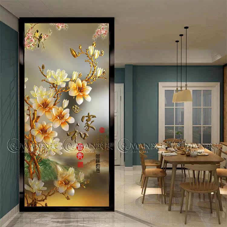Modern Art Glass Screen Partition Living Room Decoration Genguan Background Wall Frosted Technique Jade Orchid