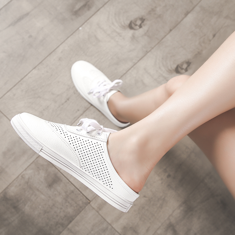 2020 summer large size women's shoes 41-43 Baotou slippers flat heel pregnant women shoes 40 42 hollow out lazy shoes