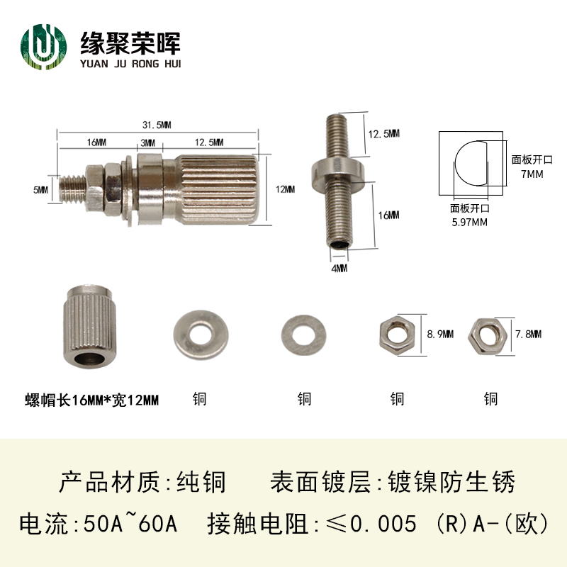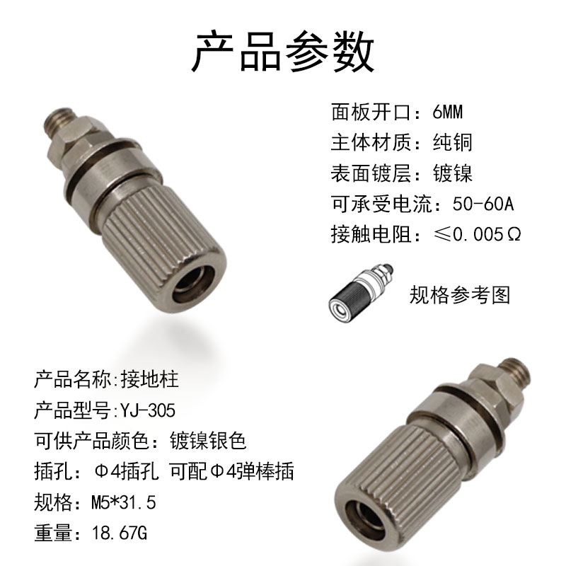 Grounding column pure copper terminal M5*33mm edge Juronghui banana socket high current 4mm metal jack socket