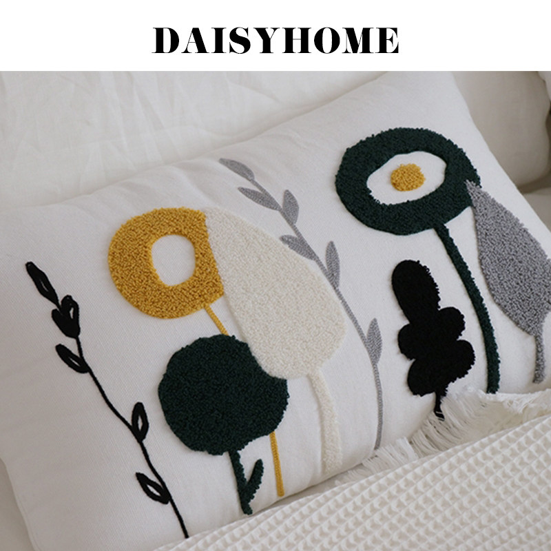 DAISYHOME Original flower Pillow Geometric Towel Embroidered Sofa Bed Head Back Cushion Decoration Lean to Pillow Wind Pillow