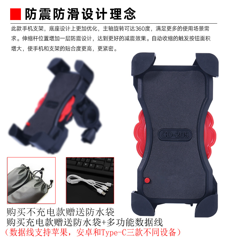 208 Not charged (one-click shrink) bracket subsection 208 without charging (one-key shrink) handlebar 209 rechargeable (one-key shrink) bracket 209 rechargeable (one-key shrink) handlebar