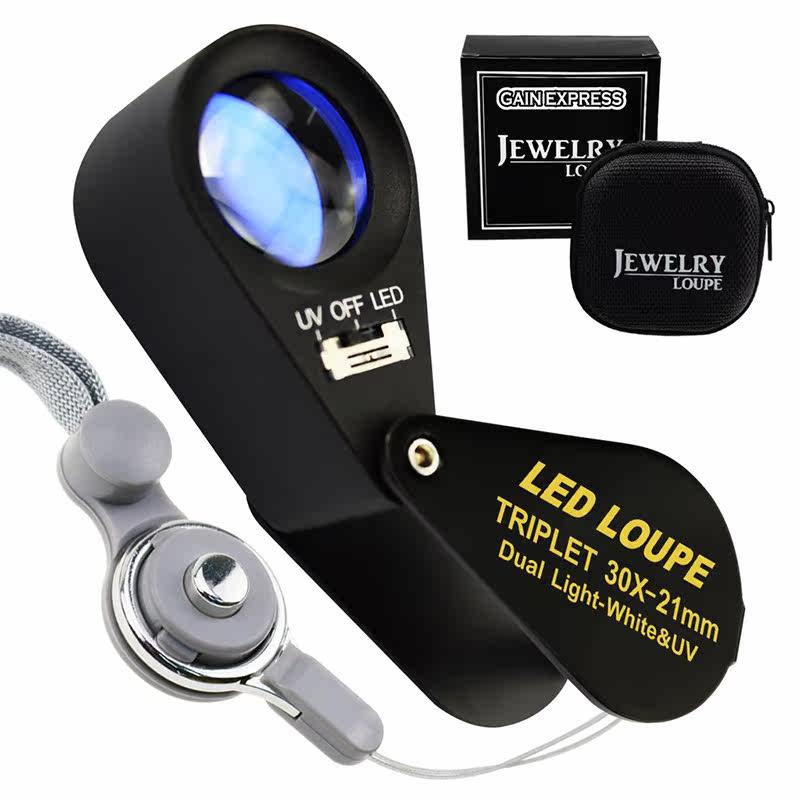 Jewelry jade identification magnifying glass diamond text play 30 times high-power high-definition magnifying glass with LED light white light ultraviolet