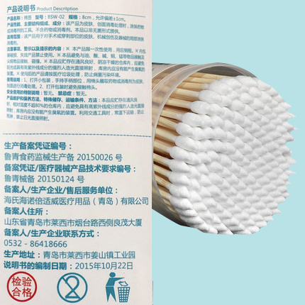 Medical Cotton Stick Wood Rod Degreased Cotton Disposable Domestic Baby Cotton Stick Pull Ear Makeup With Custard Cotton Stick