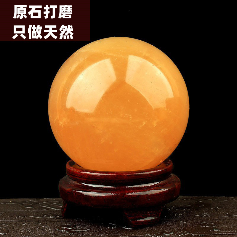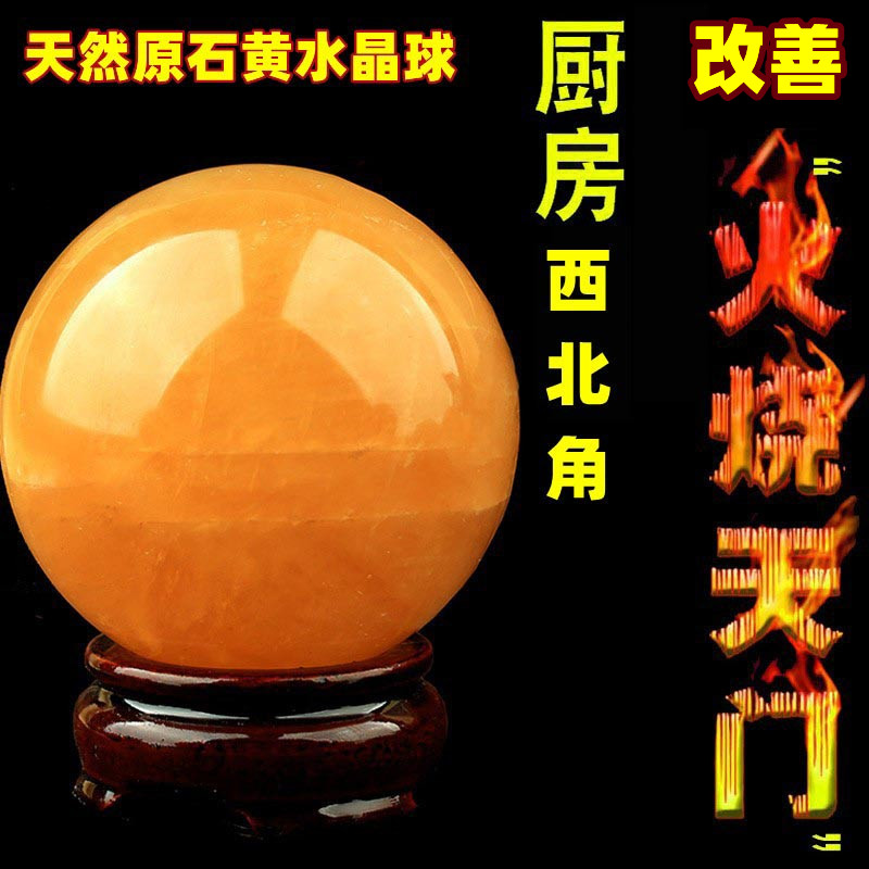 Natural yellow water crystal ball swing piece original stone pure hand polished and resolved kitchen hearth with dry position in the northwest corner-Taobao