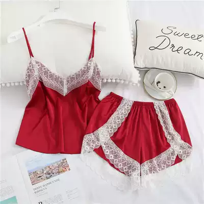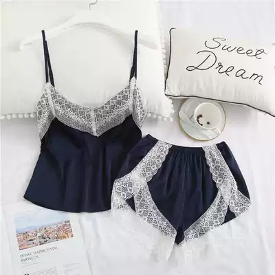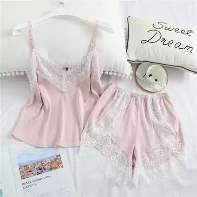 New summer ice silk pajamas women sexy suspenders shorts two-piece set Thin Ice Silk home clothes