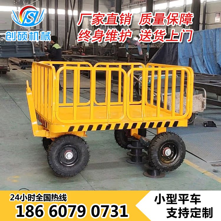 Small airport handling truck Fork traction flatbed trailer Factory logistics transfer trolley Workshop with track cart