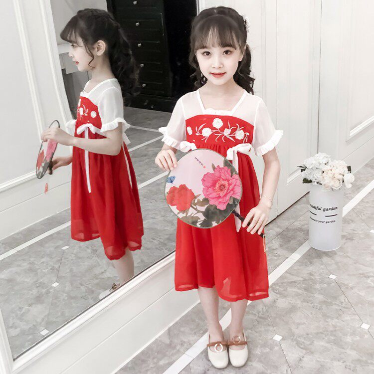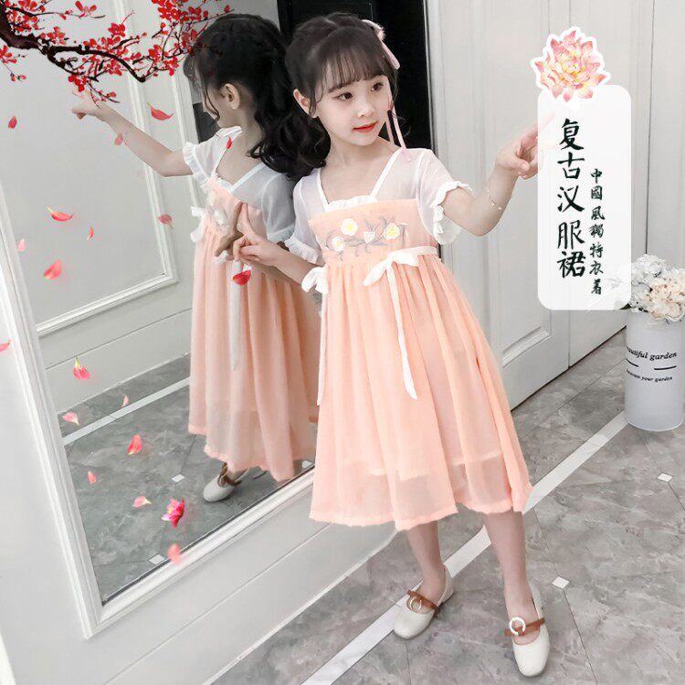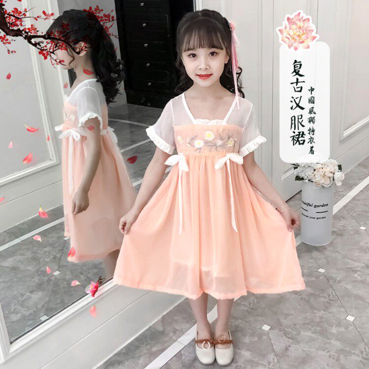 Girls skirt summer dress Hanfu Chinese style little girl Tang suit princess skirt Western style 2019 new children's dress