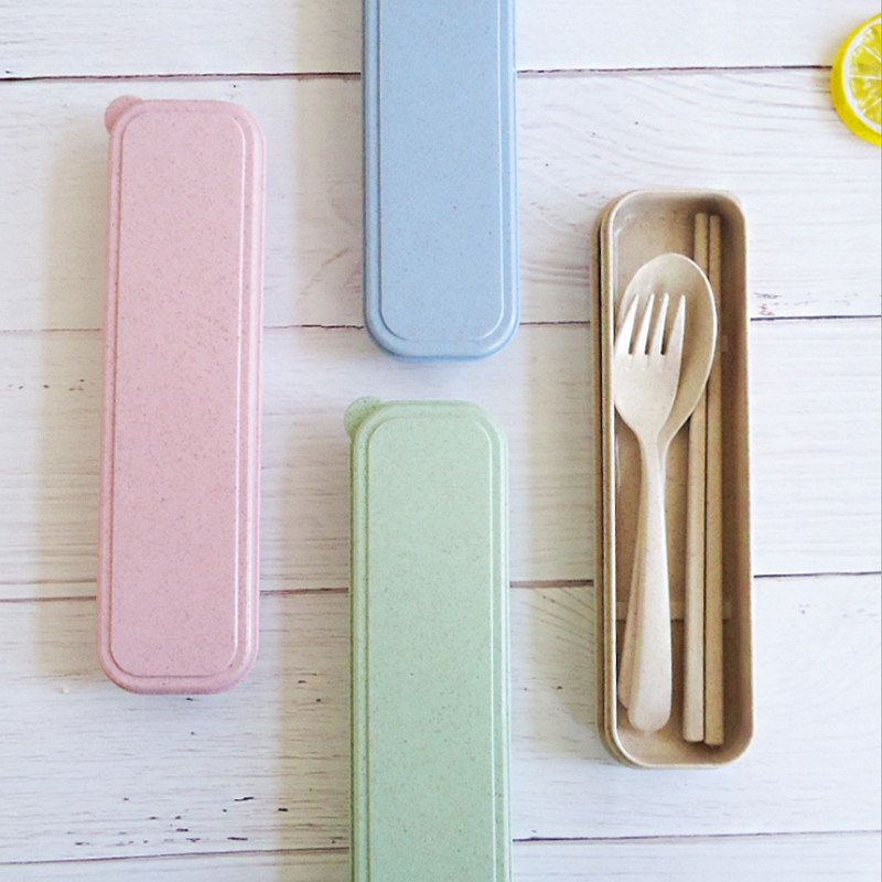 Wheat Accumulation Stalk Chopsticks Box Travel Portable Cutlery Three Sets Creative Spoon Fork Suit Custom LOGO-Taobao