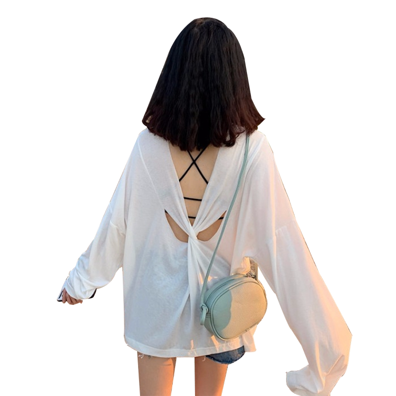 Seaside Vacation Woman with thin Bikini Shirt Swimsuit Outside Beach Surface Surface Surface