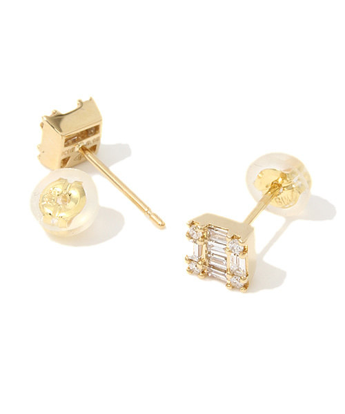 Japan's direct delivery of agete high-end series BELLESIORA luxury 18k square diamond ear pins