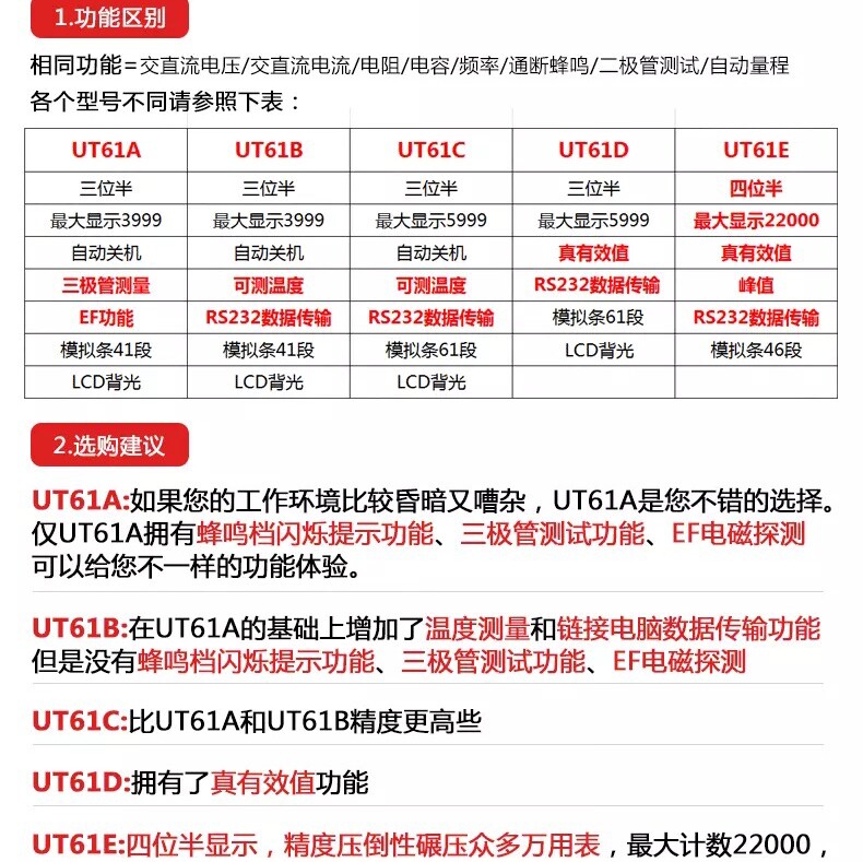 Uliid UT61EDCA digital multimeter half-precision automatic range capacitive table universal table