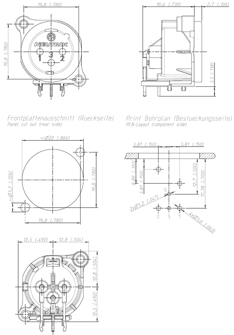 Neutrik NC3MAH Neutrik PCB horizontal installation 3-core Canon male socket