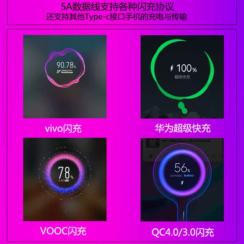 type-c data cable iqoo flash charging cable charger cable extension 2M suitable for vivoX27pro dual engine Huawei 5a super fast charging oppo flash charging 44w capsule cable