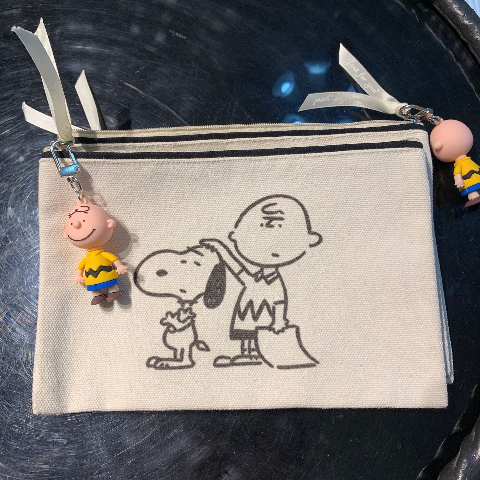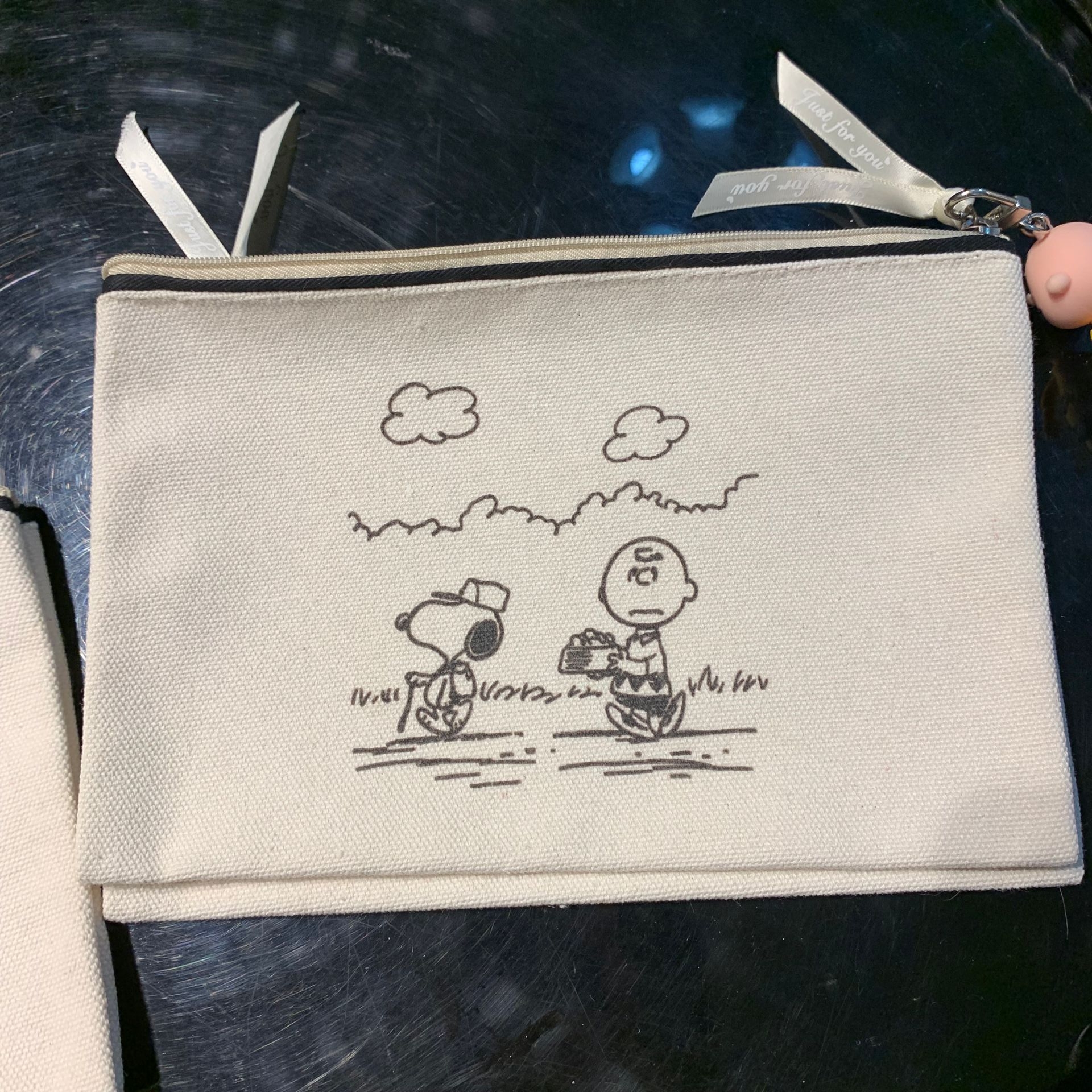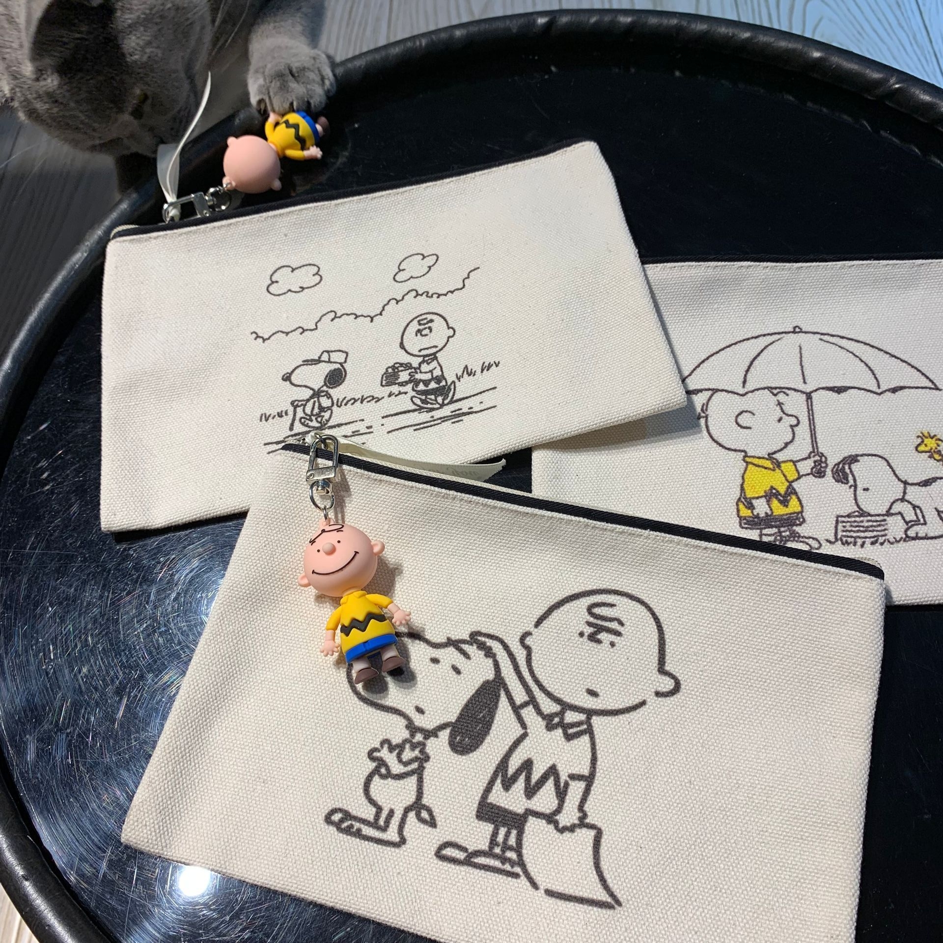 Exclusive Custom Ins Snoopy Peanut Charlie Brown Print Cute Canvas Japanese Korean Pencil Case Cosmetic Bag