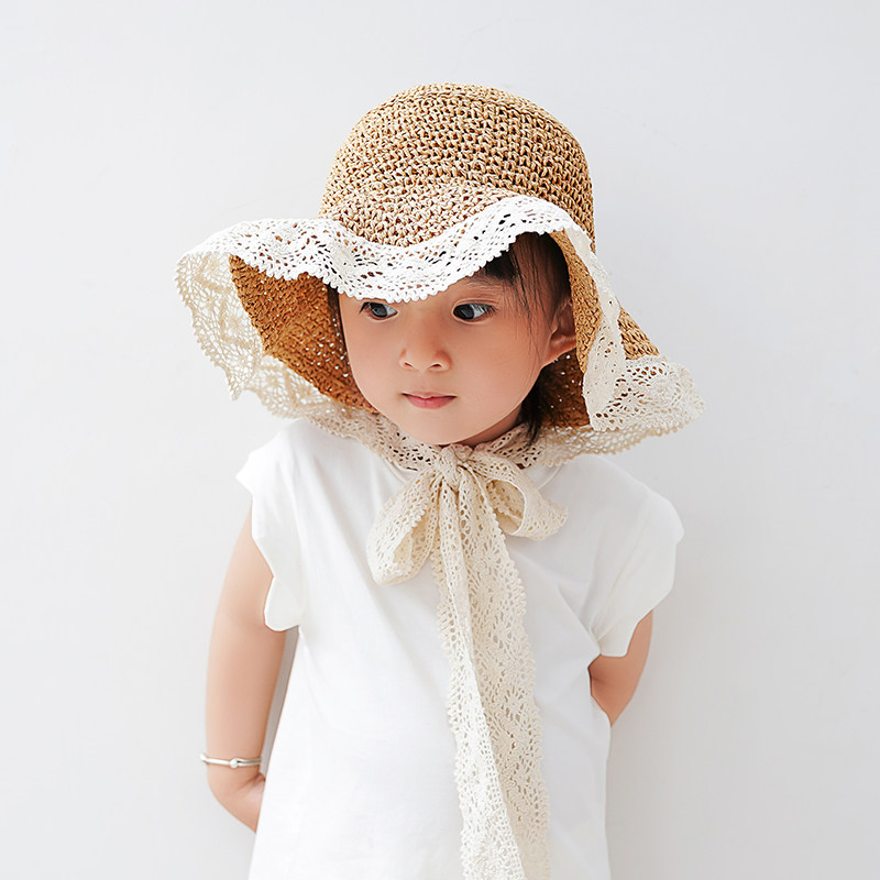 Children's grass hat female baby hat sunhat beach hat princess spring summer sun protection girl baby sun hat