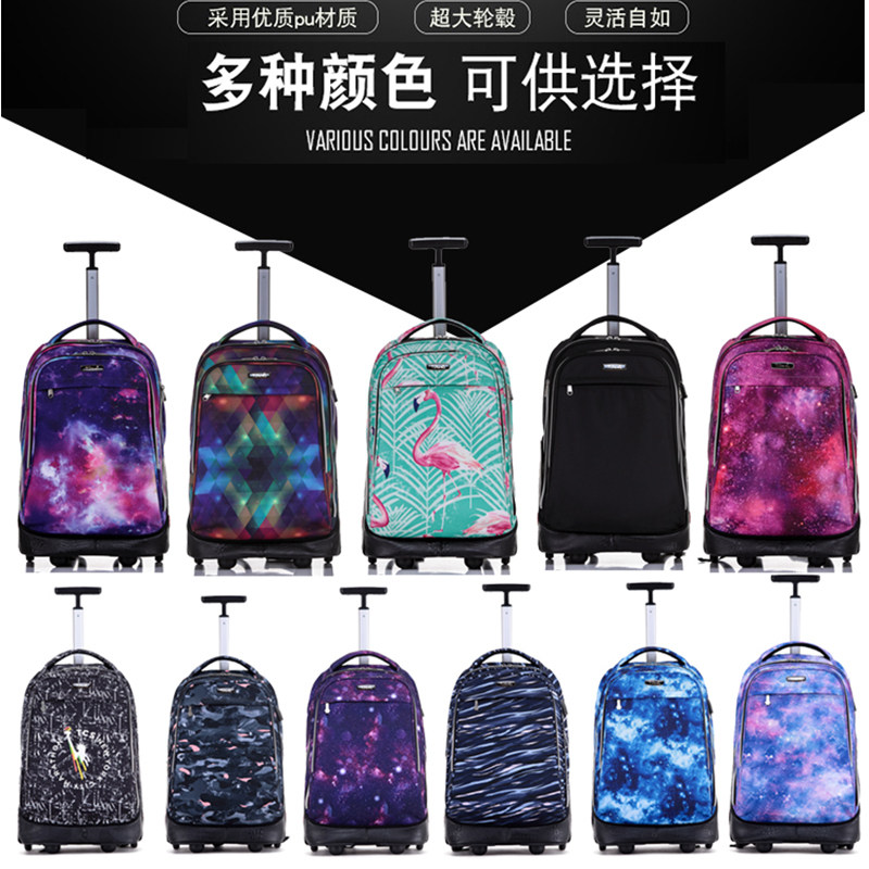 American tillami primary and middle school large wheel pull-in-bag primary high school high capacity climbing stairs double shoulder bag for men and women