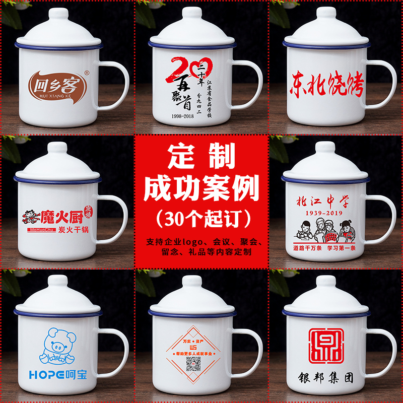 Enamel Cup nostalgic classic with lid old-fashioned serving the people water Cup boys custom large mug cup tea tank