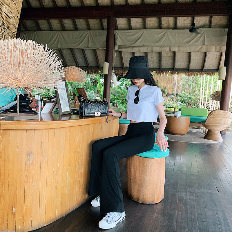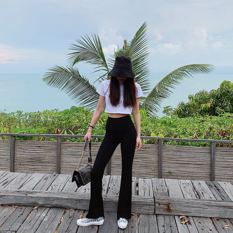 liviahome black high elastic knit horn pants woman high waist display slim fit net red tight trousers Chains