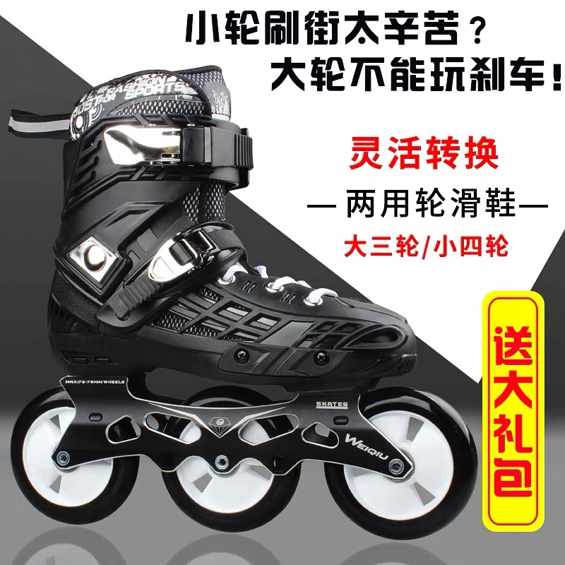 Deformation speed skating large three-wheel roller skates skating adult men's and women's inline wheel professional fancy flat flower roller skates