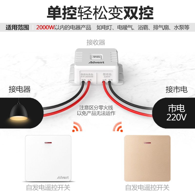 Heidemann intelligent wireless switch panel shop wiring-free remote control light control 220v wireless home double cut switch