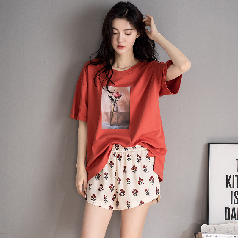 2021 new pajamas women's summer pure cotton summer thin shorts short-sleeved two-piece suit large size home clothes