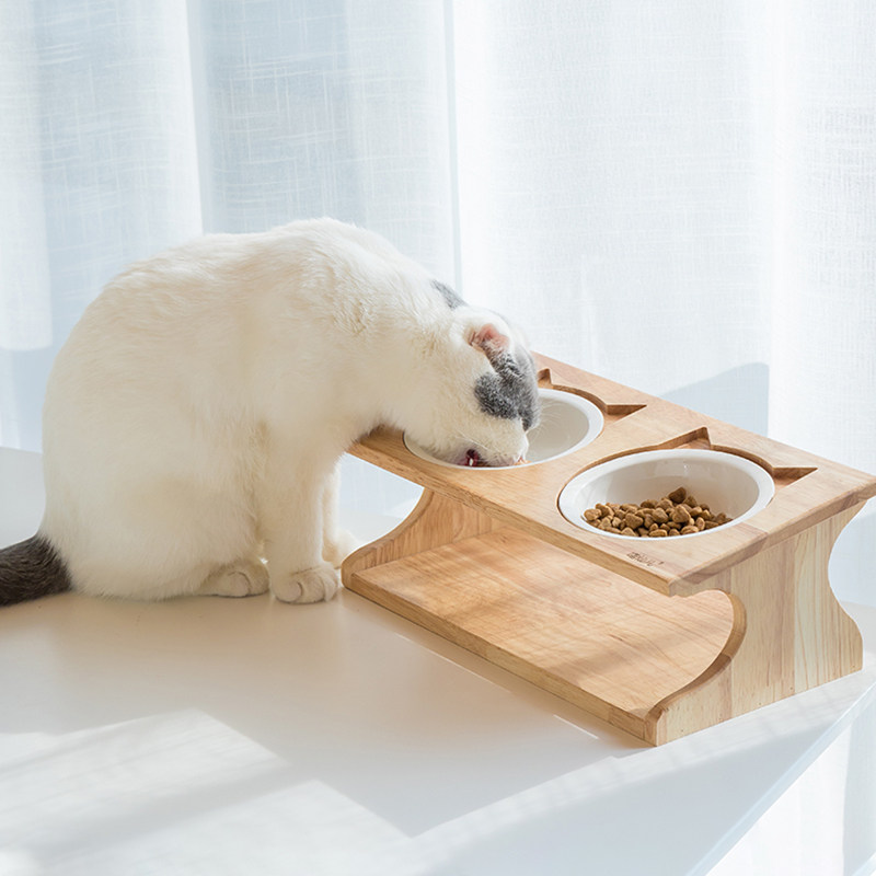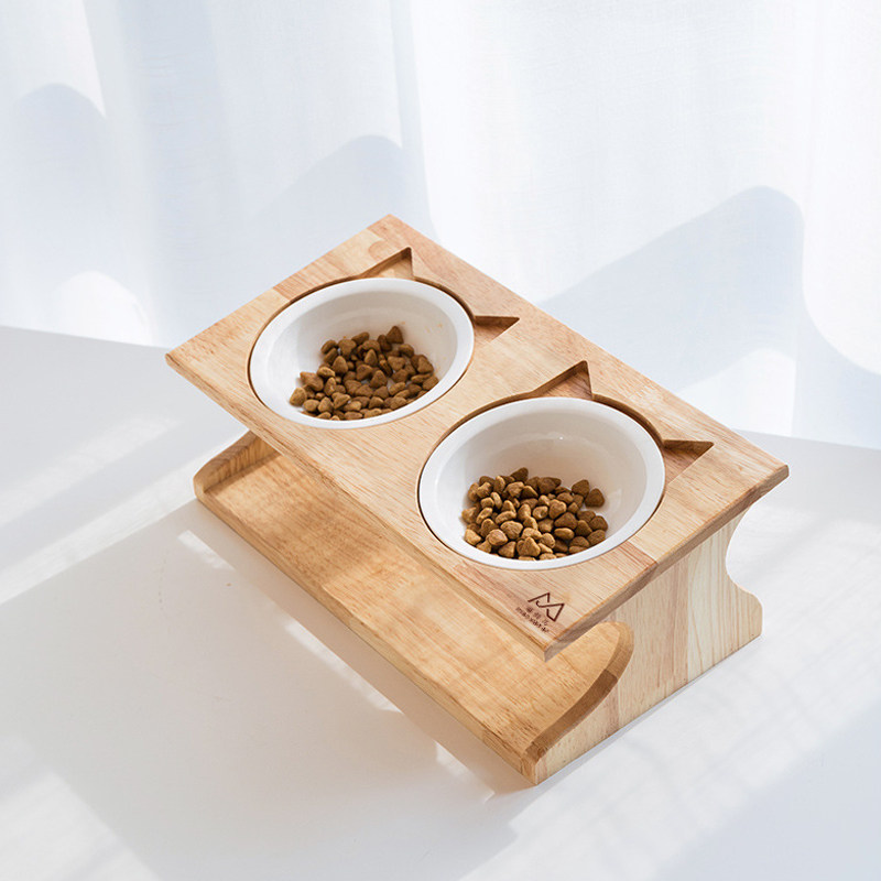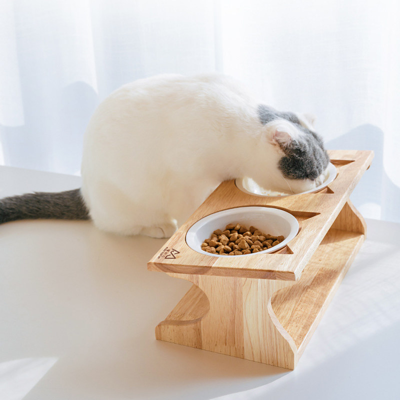 Meow Fairy Solid Wood Cat Bowl Single Bowl Double Bowl Three Bowls Three Bowls