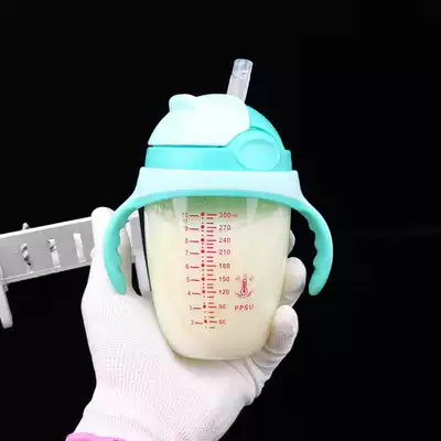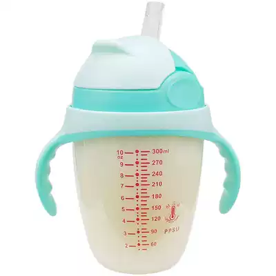 Baby PPSU Cup 300ml wide caliber gravity ball suction cup leak-proof belt handle with scale to drink milk to fall