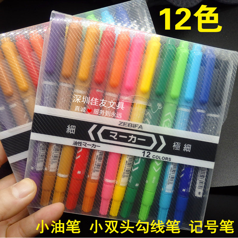 Color small double head mark pen 24 color oil pen 12 color pen monochrome pen tick pen oil speed dry
