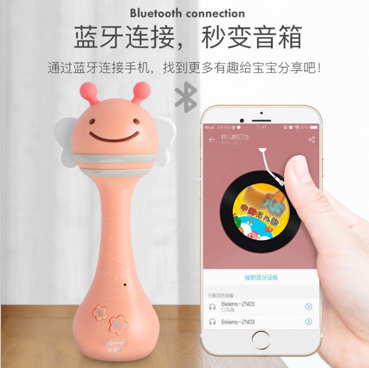 Bain Shi ringing bell light blue mini rabbit Data line Bain Shi Rai Rolling Cherry blue powder Mini rabbit Data line with annotation color Data line Freight risk little bee ringing (Bluetooth version)