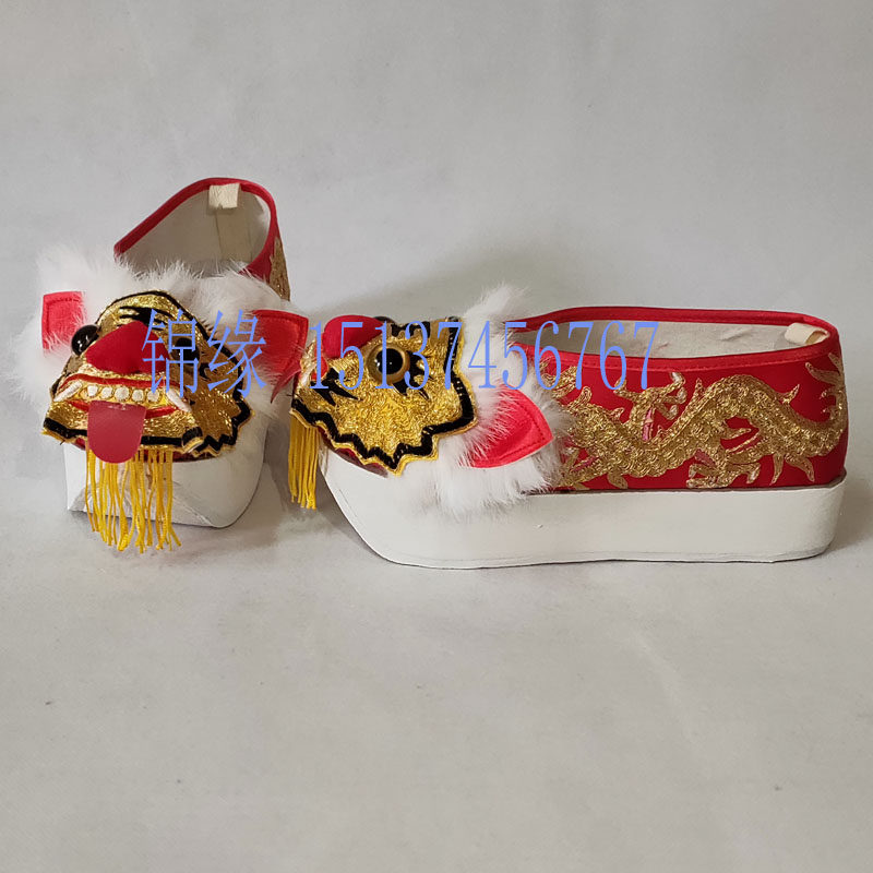 Drama opera dragon and tiger boots military generals dragon and tiger boots plate gold embroidery Sichuan opera face-changing flat bottom high bottom low help dragon tiger boots