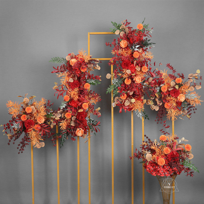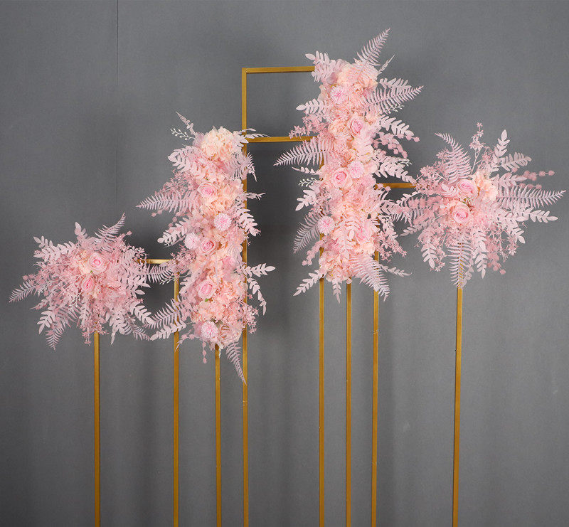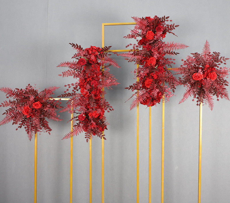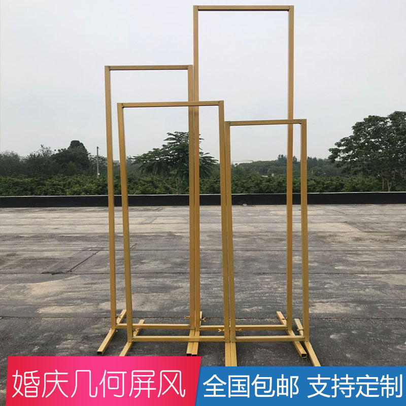 New wrought iron rectangular screen four-piece set background decoration Meichen ornaments wedding props golden geometric ornaments