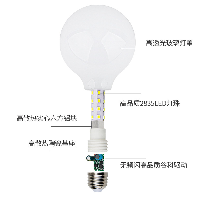 Bulb screw led light warm light warm color eye protection e27 table lamp energy saving warm yellow light dragon bead bubble spherical round makeup mirror